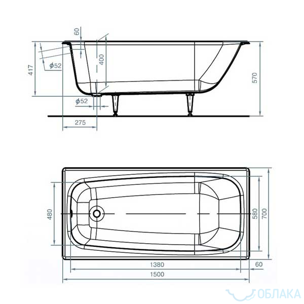 Чугунная ванна УниверсалКЛАССИК ВЧ-150х70 имеет максимально удобную конструкцию: вместительная внутренняя чаша и гладкий скругленный борт, что позволяет уменьшать объем используемой воды.