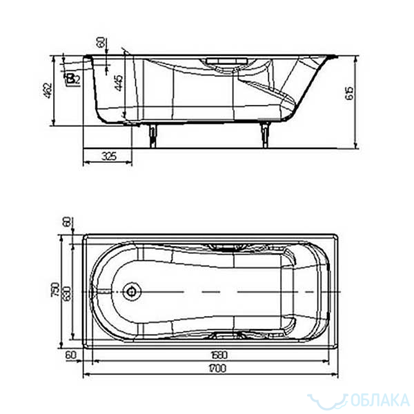Чугунная ванна Универсал СибирячкаВЧ-170х75 - эта модель классической формы, обладающая вместительной чашей и зауженным бортом.